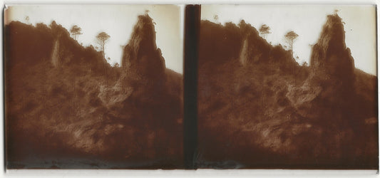 Montagne, rochers, Plaque verre photo stéréo, positif noir & blanc 6x13 cm