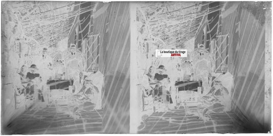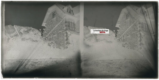 Normandie, famille maison, stéréoscopie plaque ancienne verre, négatif 9x18 cm