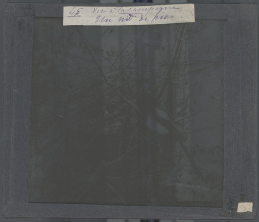 Nid de Pie, oiseau, photo ancienne plaque de verre, positif 8,5x10 cm