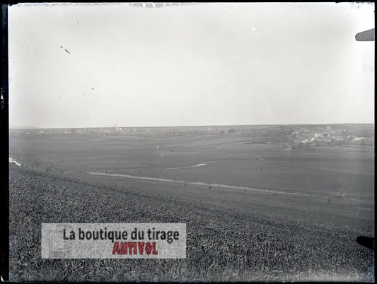 Panorama rural, France, village, plaque verre, photo ancienne, négatif 9x12 cm