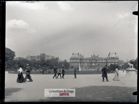 Palais du Luxembourg, Paris, plaque verre, photo ancienne, négatif 9x12 cm