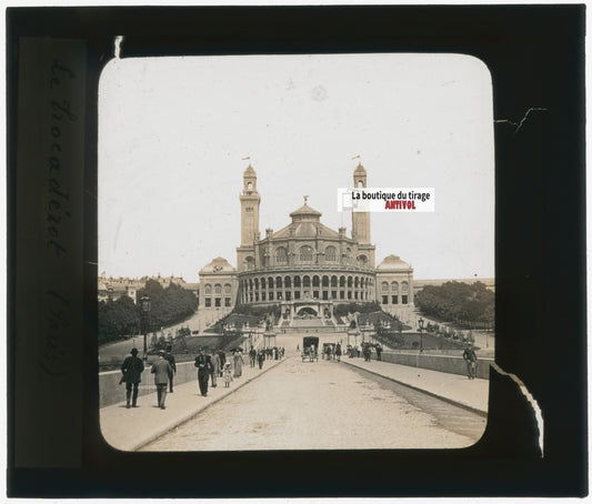 Palais du Trocadéro, Paris, photo plaque verre, sépia, positif 8,5x10 cm