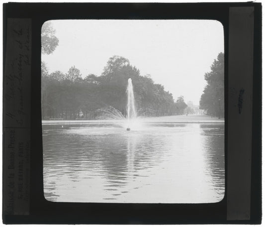 Parc des Tuileries Paris, bassin, photo ancienne plaque verre, positif 8,5x10 cm