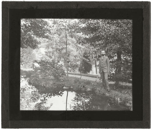 Parc, jardin, homme, photo ancienne plaque de verre, positif 8,5x10 cm