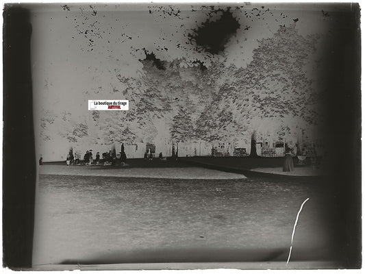 Parc, jardin, France, Plaque verre photo ancienne, négatif noir & blanc 9x12 cm