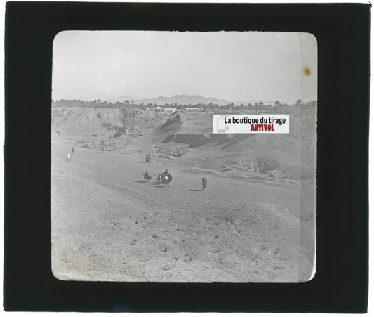 Paysage, désert sable, Maroc, photo ancienne plaque verre, positif 8,5x10 cm