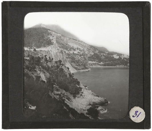 Paysage, mer, La Turbie, route d'Èze, photo plaque de verre, positif 8,5x10 cm