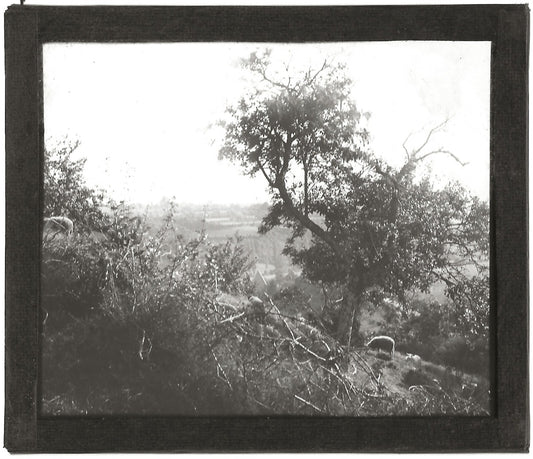 Paysage, Plaque verre photo stéréoscopique, négatif noir & blanc 4,5x10,7 cm