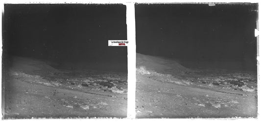 Paysage, montagne, neige, photo plaque verre, noir & blanc, positif 8,5x10 cm
