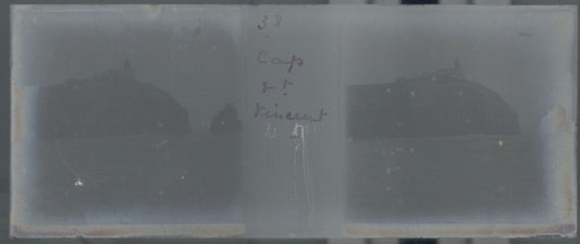 Phare, Cap Saint-Vincent, Plaque verre stéréo, positif noir & blanc 4,5x10,7 cm