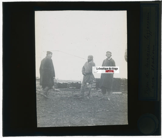 Peuple Cosaque, Russie, photo plaque verre, noir & blanc, positif 8,5x10 cm