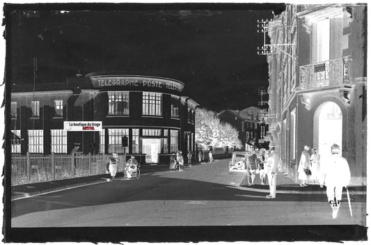 Plaque verre ancienne photo négatif noir & blanc 9x14 cm, Vittel, Rue de Verdun