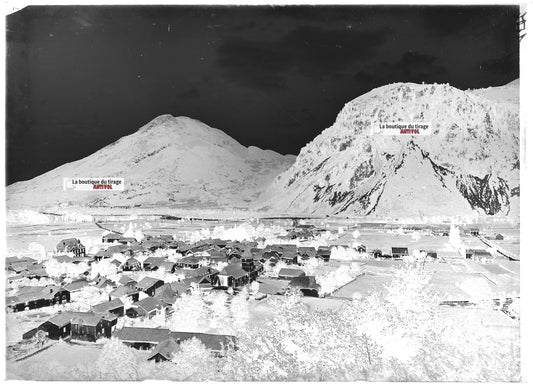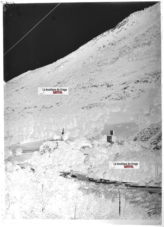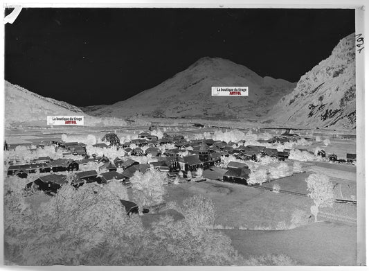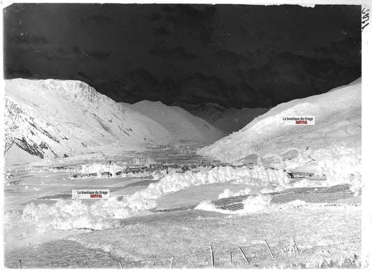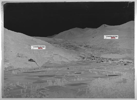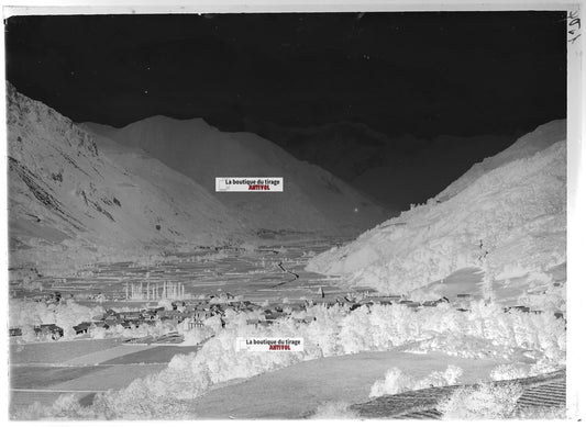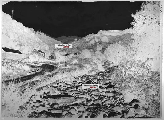 Plaque verre photo ancienne négatif noir et blanc 13x18 cm Bielle Pyrénées