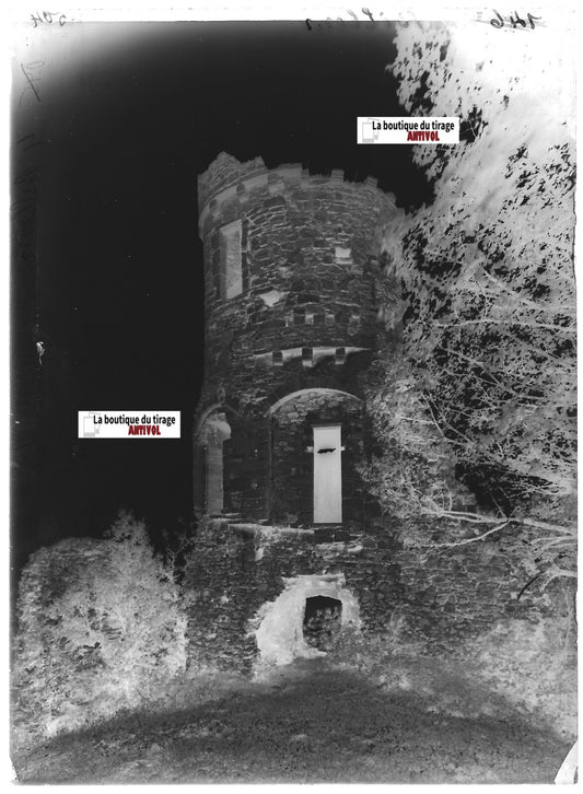 Plaque verre photo ancienne négatif noir et blanc 13x18 cm Billom ruine château