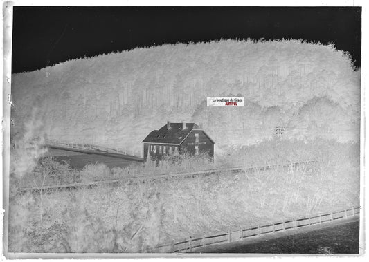Plaque verre photo ancienne négatif noir et blanc 13x18 cm Bielle paysage France