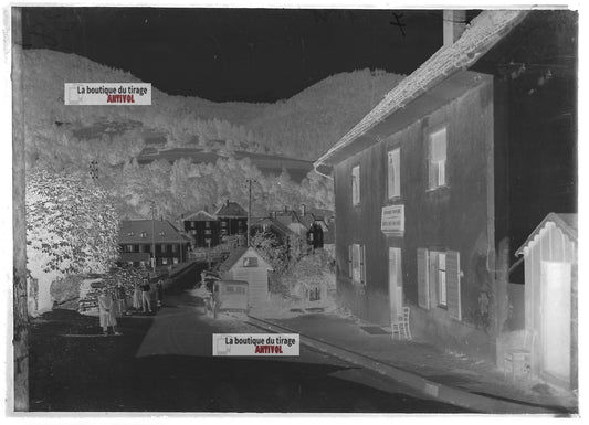 Plaque verre photo ancienne négatif noir et blanc 13x18 cm Bielle village France