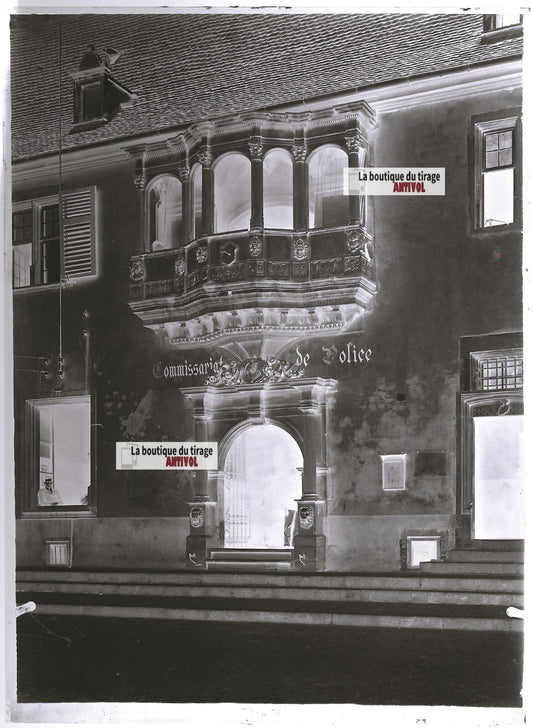 Plaque verre photo ancienne négatif noir et blanc 13x18 cm Colmar commissariat