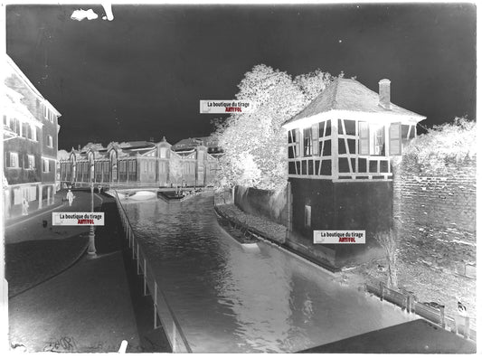 Plaque verre photo ancienne négatif noir et blanc 13x18 cm Colmar eau France