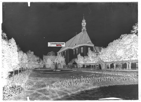 Plaque verre photo ancienne négatif noir et blanc 13x18 cm Colmar jardin public