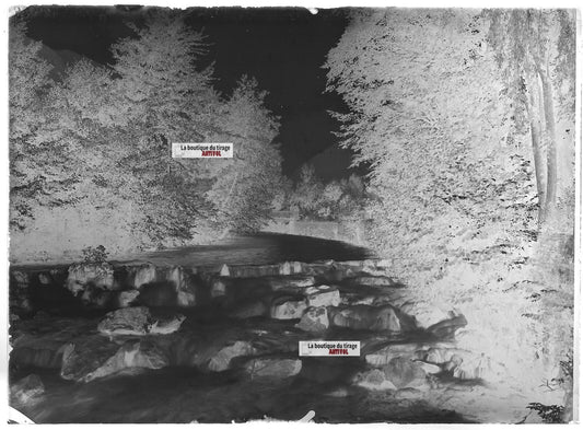 Plaque verre photo ancienne négatif noir et blanc 13x18 cm Gérardmer saut Cuves