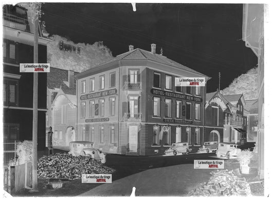 Plaque verre photo ancienne négatif noir et blanc 13x18 cm Ferrette voitures