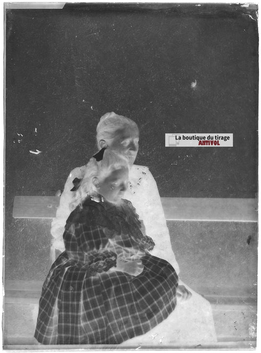 Plaque verre photo ancienne négatif noir et blanc 13x18 cm grand-mère enfant