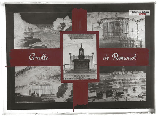 Plaque verre photo ancienne négatif noir et blanc 13x18 cm grotte Remonot Combes