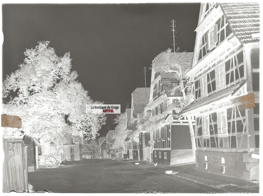 Plaque verre photo ancienne négatif noir et blanc 13x18 cm Hoffen village Alsace