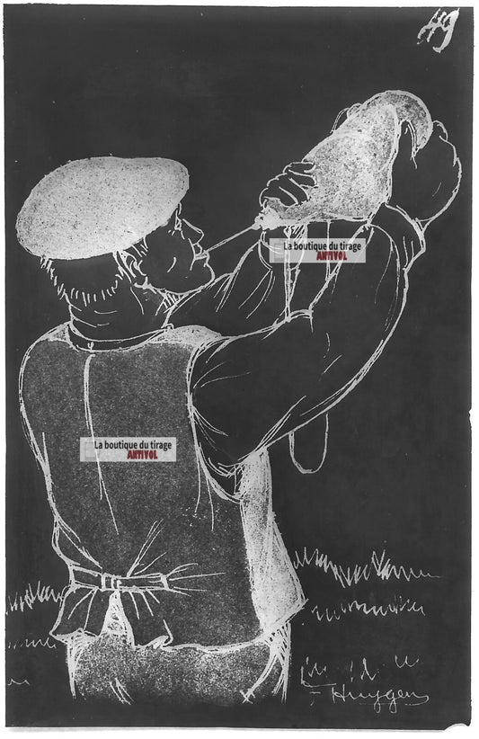 Plaque verre photo ancienne négatif noir et blanc 13x18 cm Lado dessin France