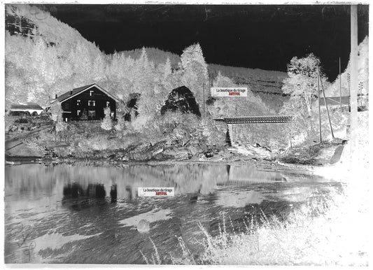 Plaque verre photo ancienne négatif noir et blanc 13x18 cm Lac de Biaufond Doubs