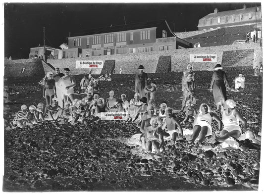 Plaque verre photo ancienne négatif noir et blanc 13x18 cm plage de Puys Dieppe