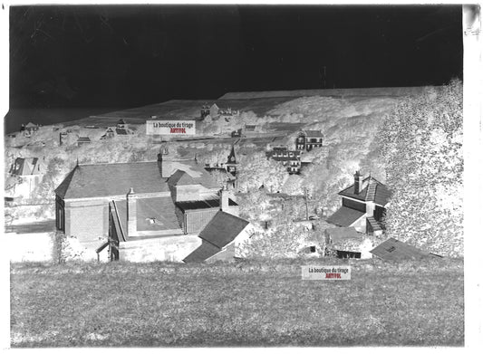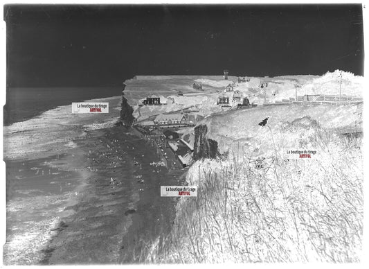 Plaque verre photo ancienne négatif noir et blanc 13x18 cm Puys Dieppe Potinière