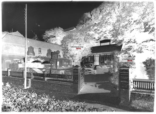Plaque verre photo ancienne négatif noir et blanc 13x18 cm restaurant Alsace