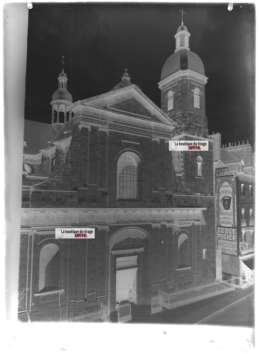 Plaque verre photo ancienne négatif noir et blanc 13x18 cm Rennes Saint-Sauveur