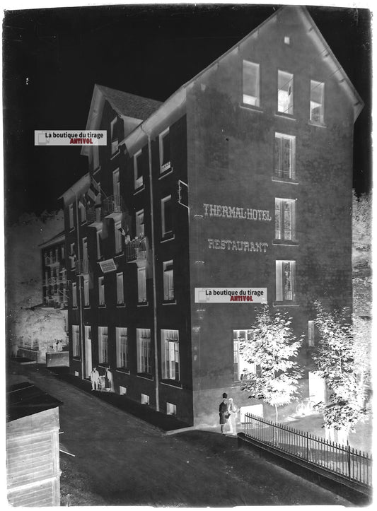 Plaque verre photo ancienne négatif noir et blanc 13x18 cm Saint-Nectaire hôtel