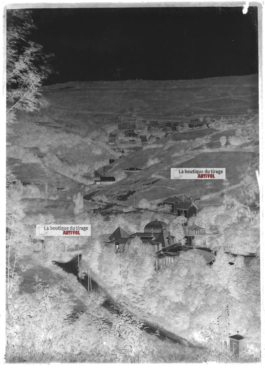 Plaque verre photo ancienne négatif noir et blanc 13x18 cm Saint-Nectaire France