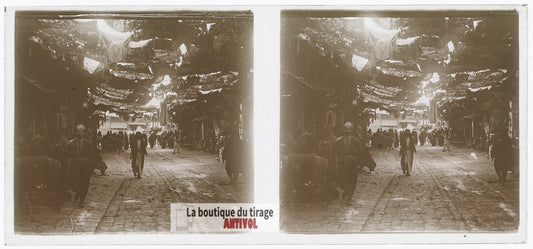 Beyrouth, souk, Liban, plaque de verre, photo ancienne stéréo 6x13 cm