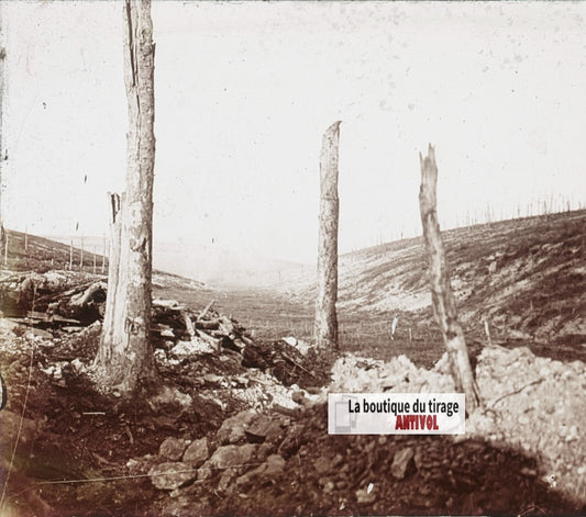 Bezonvaux, Fond des Rousses, plaque verre stéréo, photo ancienne 4,5x10,7 cm
