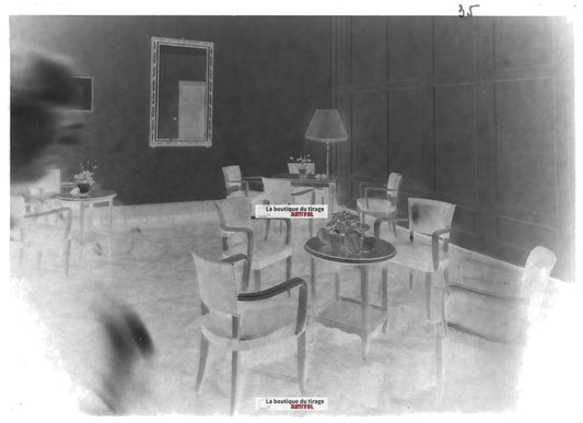 Plaque verre photo ancienne négatif noir et blanc 13x18 cm salon ancien