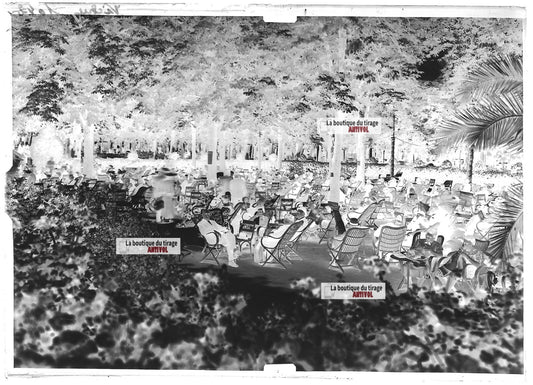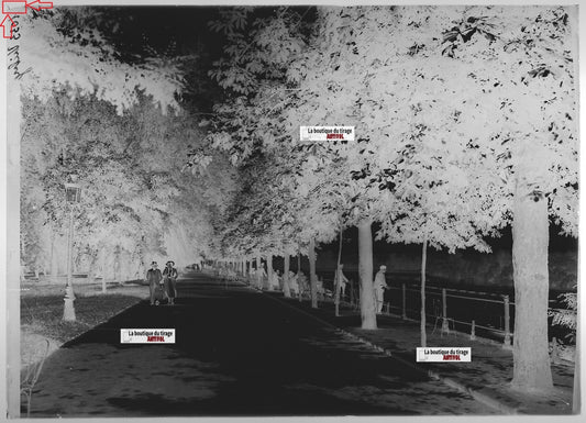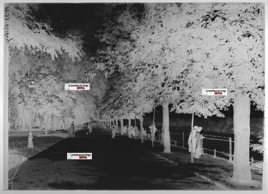 Plaque verre photo ancienne négatif noir et blanc 13x18 cm Vichy parc public