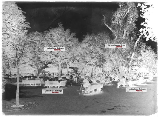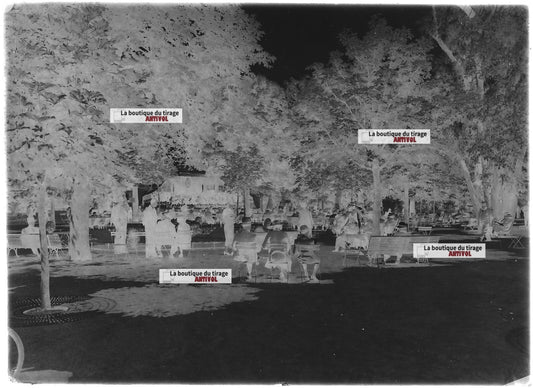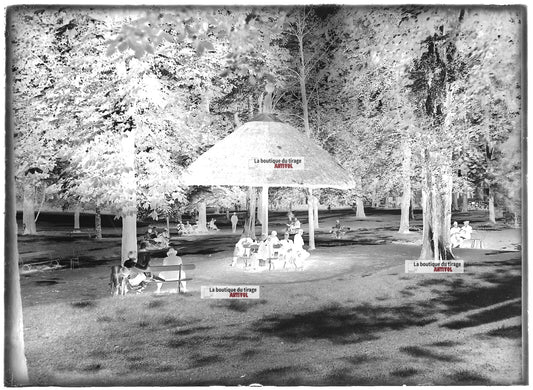 Plaque verre photo ancienne négatif noir et blanc 13x18 cm Vittel parc public