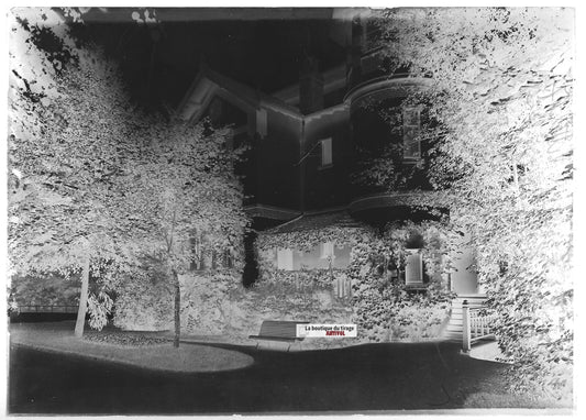 Plaque verre photo ancienne négatif noir et blanc 13x18 cm Vittel maison vintage