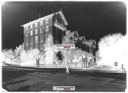 Plaque verre photo ancienne négatif noir et blanc 13x18 cm Vittel nouvel hôtel
