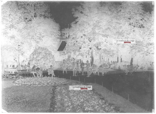 Plaque verre photo ancienne négatif noir et blanc 13x18 cm Vittel parc France