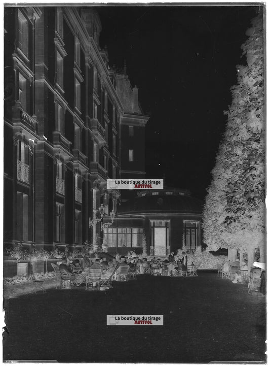 Plaque verre photo ancienne négatif noir et blanc 13x18 cm Vittel hôtel thé