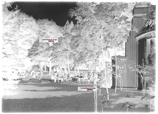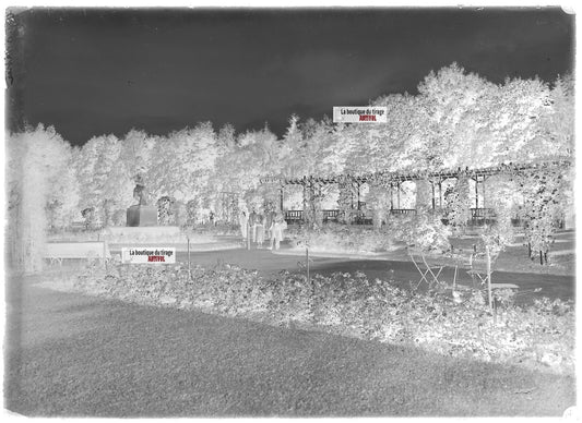 Plaque verre photo ancienne négatif noir et blanc 13x18cm parc public Vittel