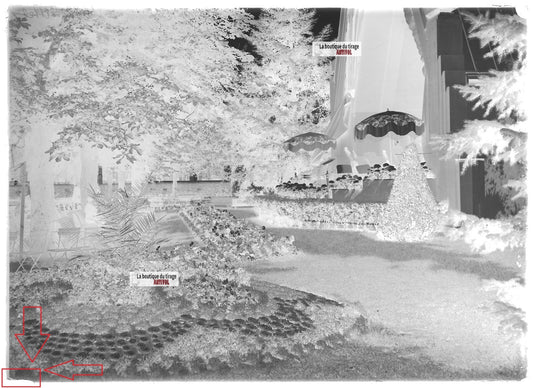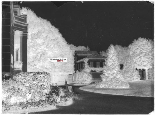 Plaque verre photo ancienne négatif noir et blanc 6x9 cm bois parc château