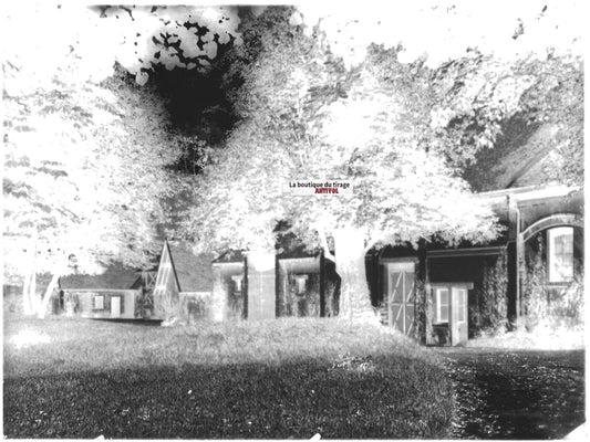 Plaque verre photo ancienne négatif noir et blanc 18x24 cm château Bailly France