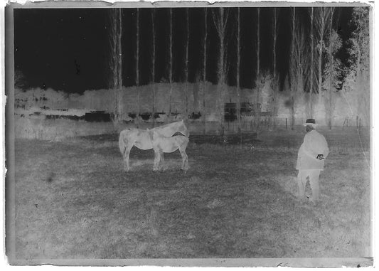 Plaque verre photo ancienne négatif noir et blanc 6x9 cm chevaux glass plate