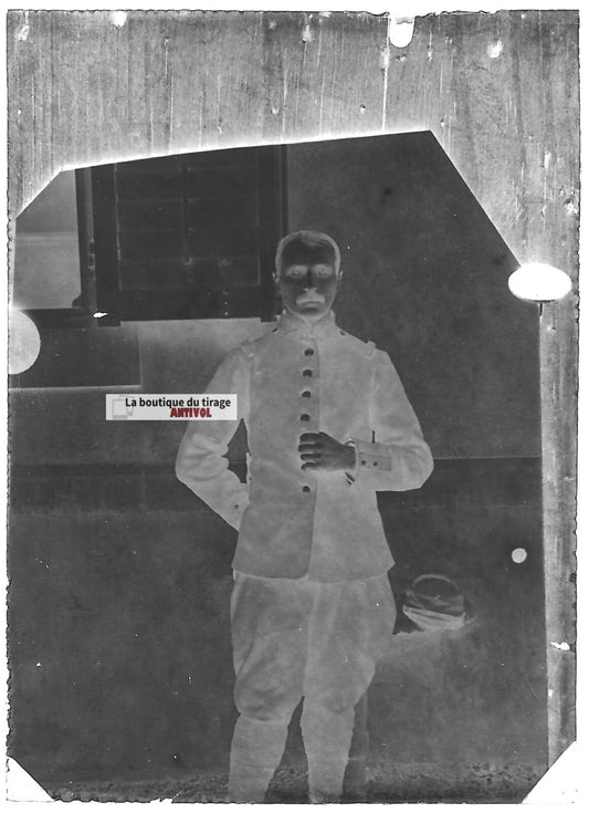 Plaque verre photo ancienne négatif noir et blanc 6x9 cm homme militaria soldat